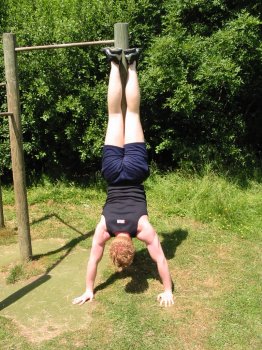 If you have trouble starting out, try doing half reps (ie. only doing the top half of the exercise) or try shoulder press ups until you can manage handstand pressups.